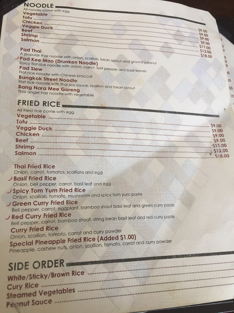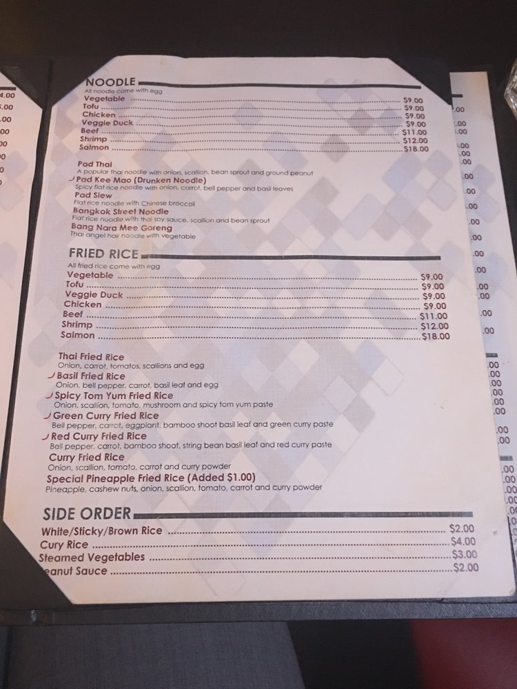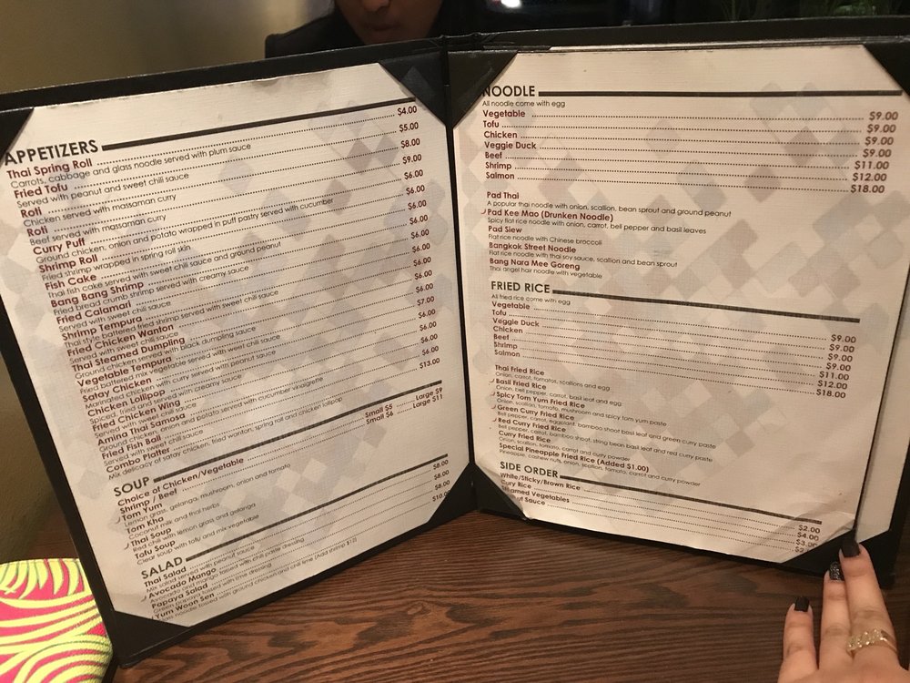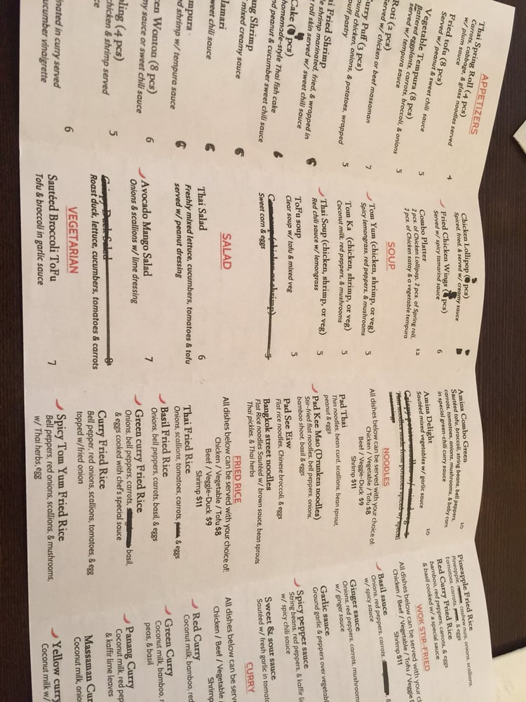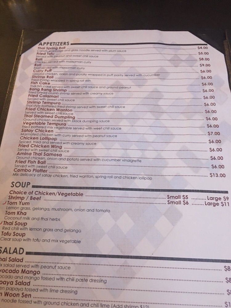 Introducing the menu at Amina Thai, a halal Thai restaurant in Jamaica, NY, offering a variety of appetizers, soups, and salads. The menu includes favorites like Thai Spring Rolls, Tofu with peanut sauce, Tom Yum Soup, and Papaya Salad. Customers rave about the quality of the food, comparing it to authentic Thai restaurants in the city. The environment is praised for being tasteful and filling, with highlights such as Thai Iced Tea, Lollipop Chicken, and Coconut Sticky Rice with Mango. Despite some mixed reviews regarding cash-only policy and slow service, Amina Thai is commended for its close-to-authentic taste and welcoming Muslim family-owned atmosphere. With its many vegetarian options and cozy ambiance, Amina Thai is a must-visit spot for delicious Thai cuisine.